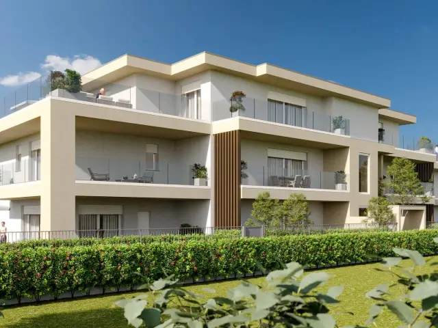 Bernareggio - Proponiamo un esclusivo appartamento in costruzione, situato al piano terra di una minipalazzina con giardino privato di 150 mq dove è possibile ammirare degli scorci di tramonto circondato dalla tranquillità assoluta. L'appartamento è composto da un ampio salone con vetrata panoramica scorrevole, una cucina abitabile, tre camere di cui una con cabina armadio e bagno privato oltre ad un secondo bagno. L'immobile è dotato di un impianto di riscaldamento autonomo con pompa di calore e pannelli fotovoltaici posati sulla copertura, che permetteranno di gestire al meglio i consumi. Gli infissi e le finestre saranno in triplo vetro PVC, garantendo isolamento termico e acustico.