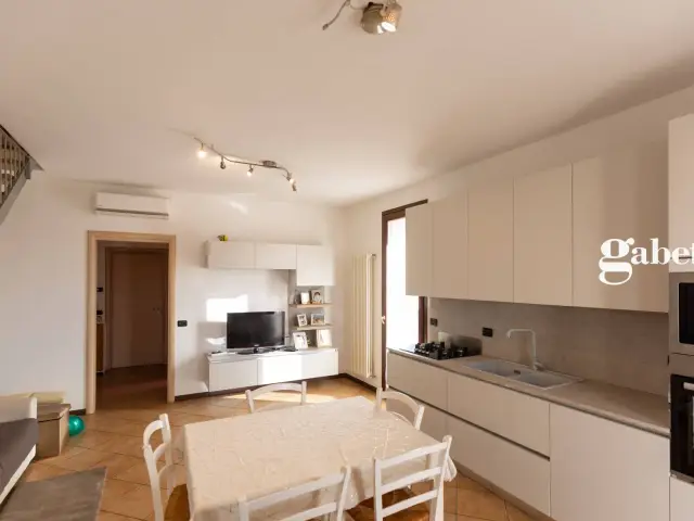 Sulbiate - In recente minipalazzina attico bilivello con una superficie complessiva di 135 mq, di cui 80 mq al piano primo e 55 mq al piano mansardato con travi a vista. La sua distribuzione interna è composta da 4 locali, un ampio salone, una cucina a vista, tre camere da letto e 2 bagni, garantendo un'adeguata e funzionale suddivisione degli ambienti. Le spese condominiali sono minime e l'unità immobiliare gode di una perfetta esposizione sud-est-ovest, garantendo un'ottima luminosità naturale e una piacevole vista panoramica. Finiture di alta qualità, un moderno impianto di riscaldamento autonomo e i serramenti sono in doppio vetro e legno rendono preziosa questa proposta immobiliare. Completa la proprietà un comodo box auto singolo ad € 15.000,00.