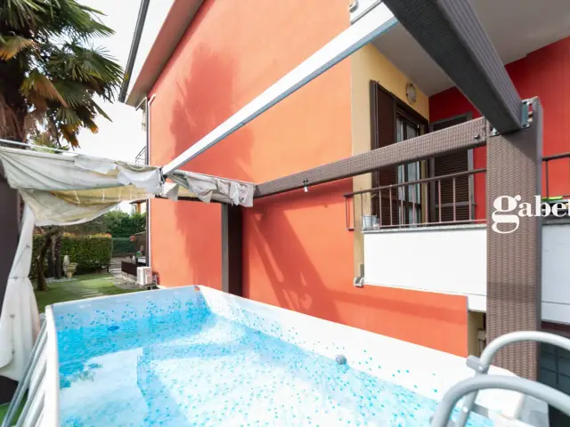 Calusco d'Adda - In posizione tranquilla e riservata disponiamo di una villa angolare interna con 300 mq di giardino, piscina fuori terra, pergola e casetta in legno per gli attrezzi. L'immobile è inserito all'interno di un contesto residenziale di pregio, è di recente costruzione e si presenta in ottimo stato di conservazione. L'ingresso principale conduce alla zona giorno, composta da un ampio soggiorno con terrazzino, una luminosissima cucina abitabile esposta a sud con balcone ed un bagno. Al piano superiore, troviamo la zona notte con tre camere da letto di cui due matrimoniali ed un bagno. La villa è dotata di impianto di riscaldamento autonomo, alimentato a metano, garantendo un elevato comfort abitativo in ogni stagione. Gli infissi e le finestre, in doppio vetro legno, garantiscono un'ottimo isolamento termico e acustico. Completano la proprietà un box auto singolo ad € 20.000 ed una taverna con angolo cottura oltre ad una comoda lavanderia. L'immobile è dotato di allarme e viene venduto completamente arredato. La villa gode di una favorevole esposizione sud-est-nord, garantendo una buona luminosità durante tutta la giornata ed ha una vista panoramica sul paesaggio circostante. Solo € 280.000.