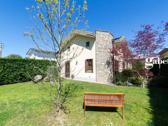 Sulbiate - In posizione panoramica e riservata stupenda villa angolare parzialmente rivestita in pietra disposta su due livelli oltre ad interrato. La proprietà è di recente costruzione ed è perfetta internamente. Si estende su una superficie totale di 220 mq. L'immobile è composto da un ingresso indipendente, un soggiorno con camino, una cucina abitabile, una camera ed un bagno al piano terra. Il piano è circondato sui tre lati da un giardino privato finemente piantumato. Al piano primo trovano spazio due camere da letto di cui una suite con bagno privato e balcone oltre ad una zona studio open space. Completano la proprietà una taverna con una parete rivestita in pietra ed una stufa, una lavanderia finestrata, un box auto doppio in larghezza ed un posto auto di proprietà coperto. L'impianto di riscaldamento è a pavimento ed è presente l'aria condizionata. Gli infissi e le finestre sono in legno con doppio vetro e garantiscono un'ottima efficienza energetica ed un buon isolamento acustico. La villa è dotata di allarme e presenta un'esposizione su tre lati (ovest-sud-est), che garantisce una buona luminosità naturale all'interno degli ambienti. La cucina, di generose dimensioni, è abitabile e dispone di tutti gli spazi necessari per la preparazione e il consumo dei pasti. Completano la proprietà un giardino privato di 220 mq ideale per godere di uno spazio all'aperto. Solo € 350.000 oltre box doppio ad € 30.000.