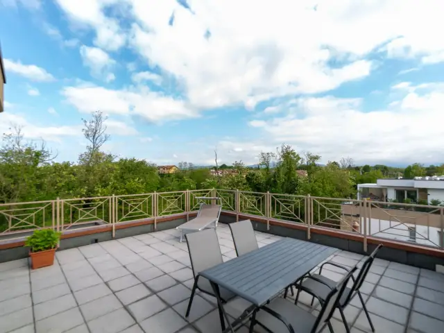 Bernareggio - In palazzina di recentissima costruzione disponiamo di attico e superattico con terrazzo panoramico che offre una vista esclusiva e spazi interni di pregio. L'immobile si trova al secondo piano di una palazzina dotata di ascensore, soluzione abitativa di lusso che ha una superficie pari a 123 mq. L'unità immobiliare è composta da un grande salone con serramento scorrevole che ci porta su un terrazzo coperto dotato di tende Crystal, una cucina abitabile aperta che ha a disposizione uno spazioso balcone. completano il piano due ampie camere da letto intervallate da due bagni finestrati di cui uno con vasca ed uno con doccia. L'attico internamente si collega con una scala Rintal al terrazzo di 30 mq ubicato al piano superiore dove si può pranzare o cenare con la massima libertà ammirando splendidi tramonti. Finiture di livello, aria condizionata, riscaldamento a pavimento e la ventilazione meccanica controllata rendono unica questa proposta immobiliare. Grazie alla sua posizione strategica, l'immobile gode di una vista panoramica sulle colline circostanti. Solo € 300.000 oltre ad un box doppio con basculante automatizzata ed allarmato ad € 30.000.